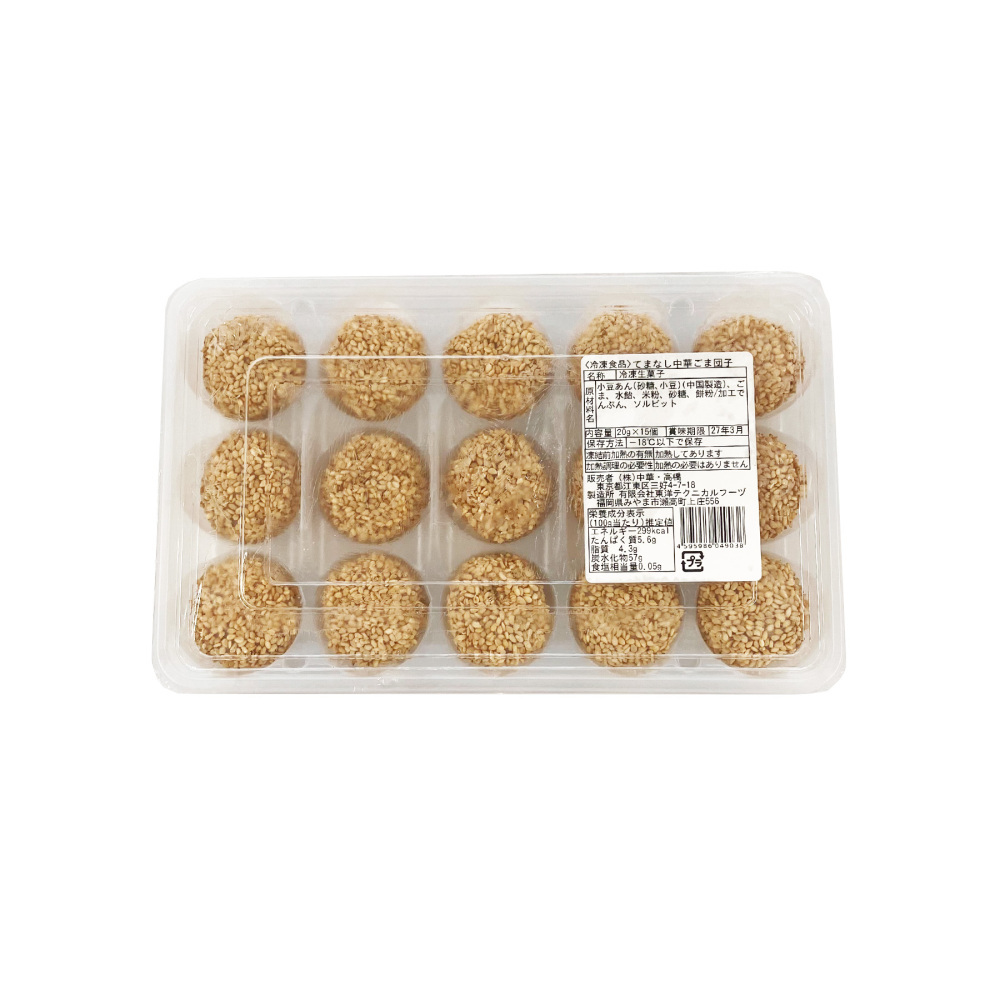国内製造で解凍するだけで食べれる大変便利なごま団子です。そのままでもトッピングとしてもお使いいただけるサイズになっております。またトレイ式なので使いたい分だけ解凍も可能です。揚げる手間なし、人件費削減、なのにおいしい!がコンセプトのスイーツです。